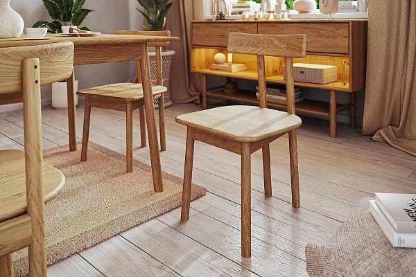 Massivholzstuhl mit abgerundeter Rückenlehne